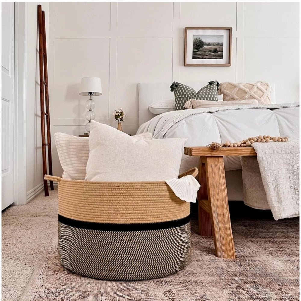 Generic Cotton Dori 16x14 Inch Storage Basket For Clothes (Beige-Beige Black)