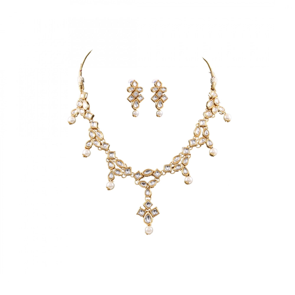 Designer Pearl Gold Plated Kundan Necklace Set