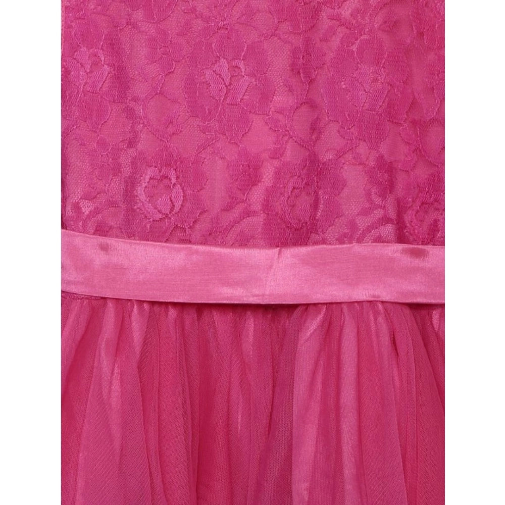 Girl's Polyester Net Floral Printed Sleeveless Round Neck Dress