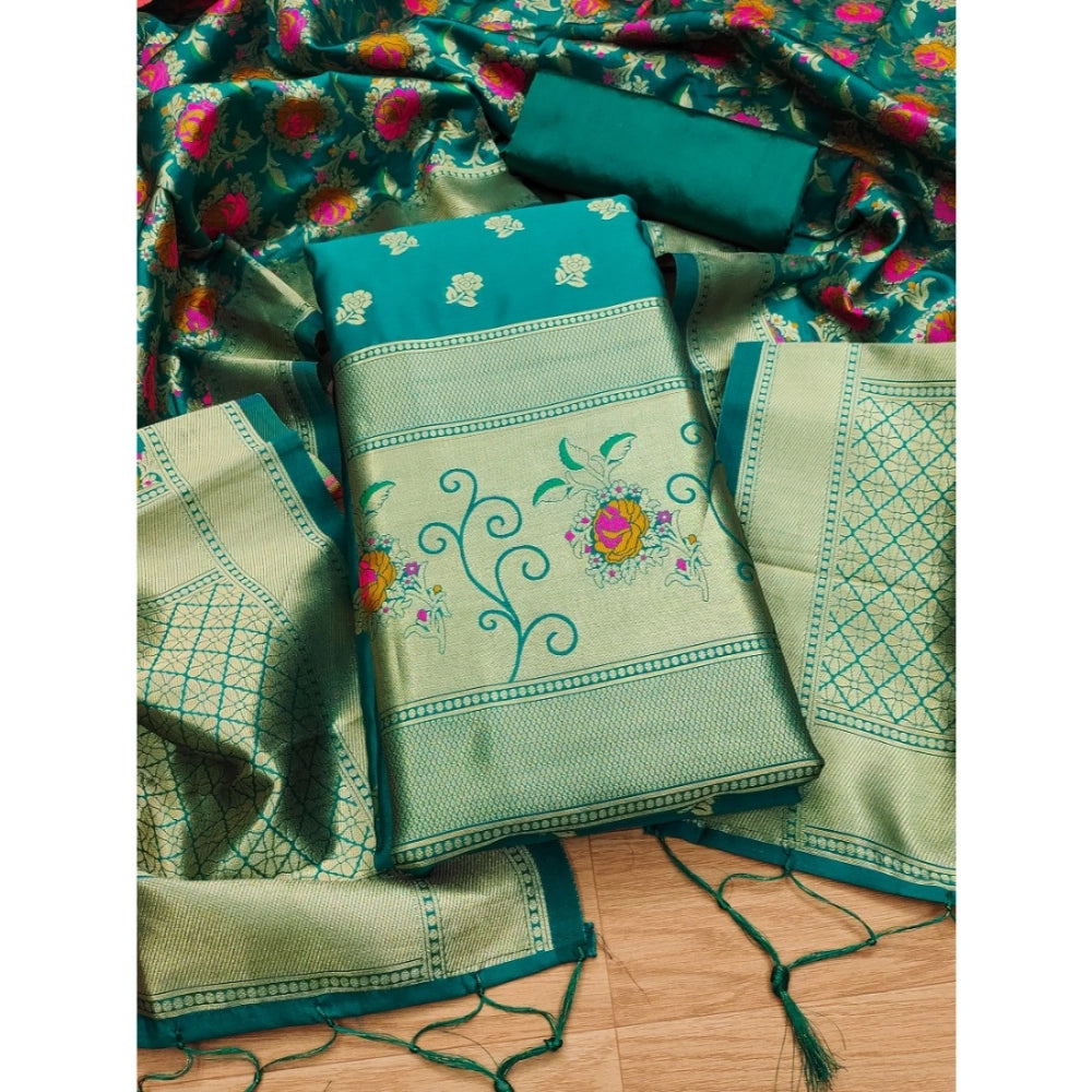 Generic Women's Banarasi Silk Printed Unstitched Salwar Suit Material With Dupatta (Rama, 3Mtrs)