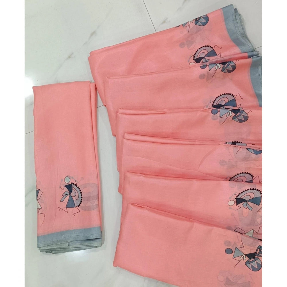 Women's Cotton Silk Printed Saree With Unstitched Blouse