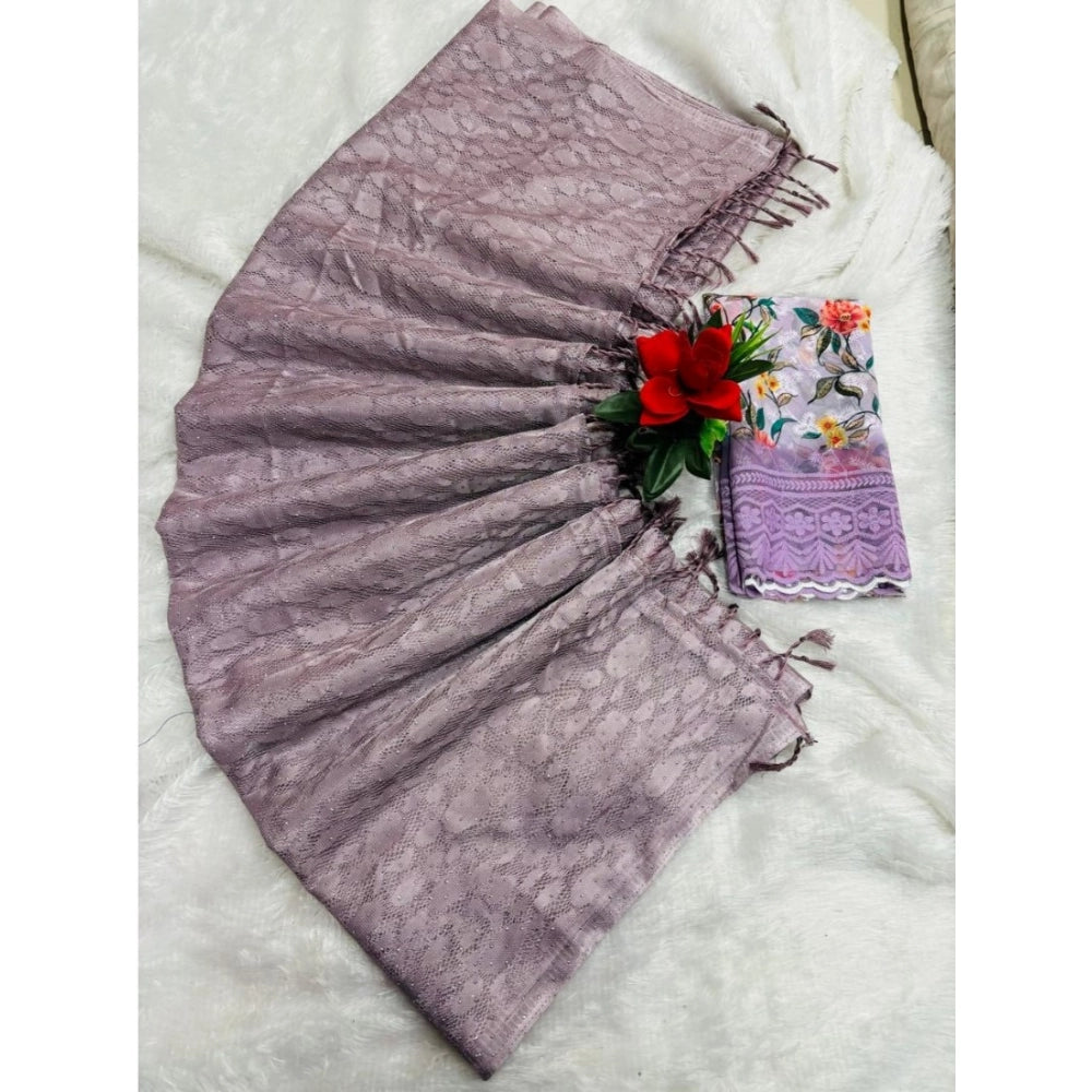 Generic Women's Georgette Embellished Saree With Unstitched Blouse (Purple, 5-5 Mtrs)