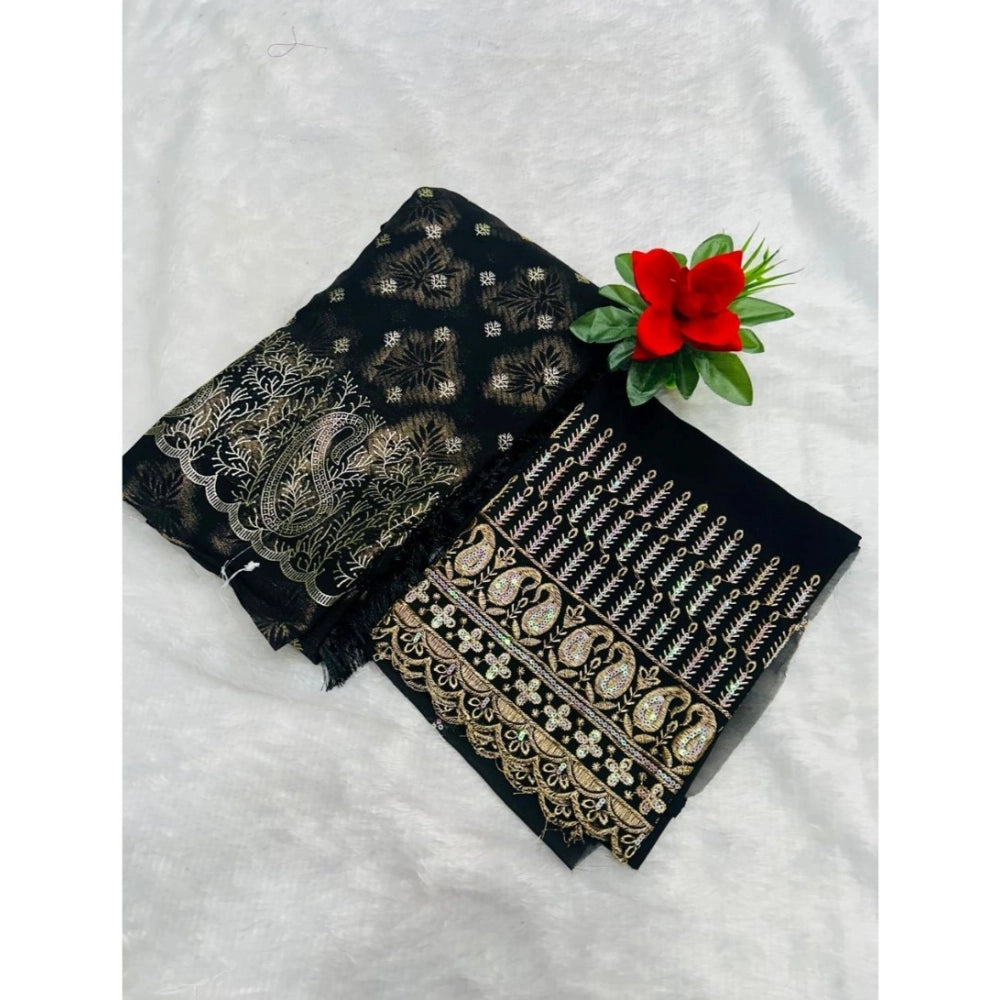 Generic Women's Georgette Printed Saree With Unstitched Blouse (Black, 5-5 Mtrs)