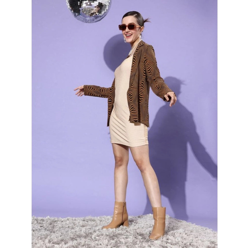 Generic Women's Polyester Lycra Embellished Square Neck Sleeveless Dress (Gold)
