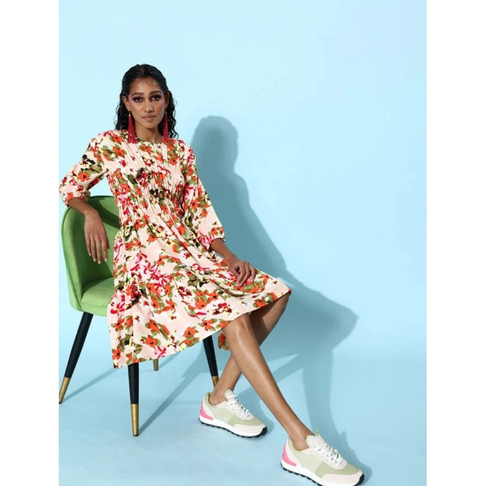 Generic Women's Polyester Moss Polka Round Neck 3/4th Sleeves Dress (Multicolor)