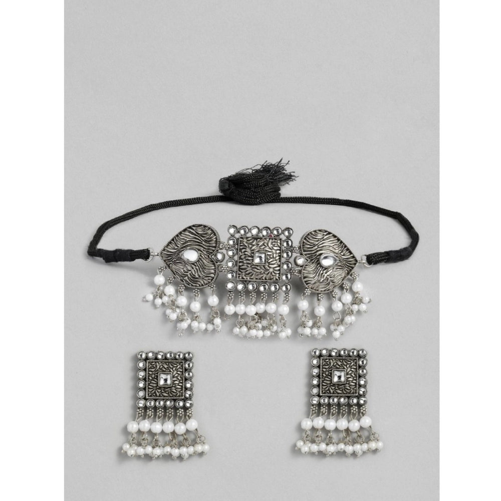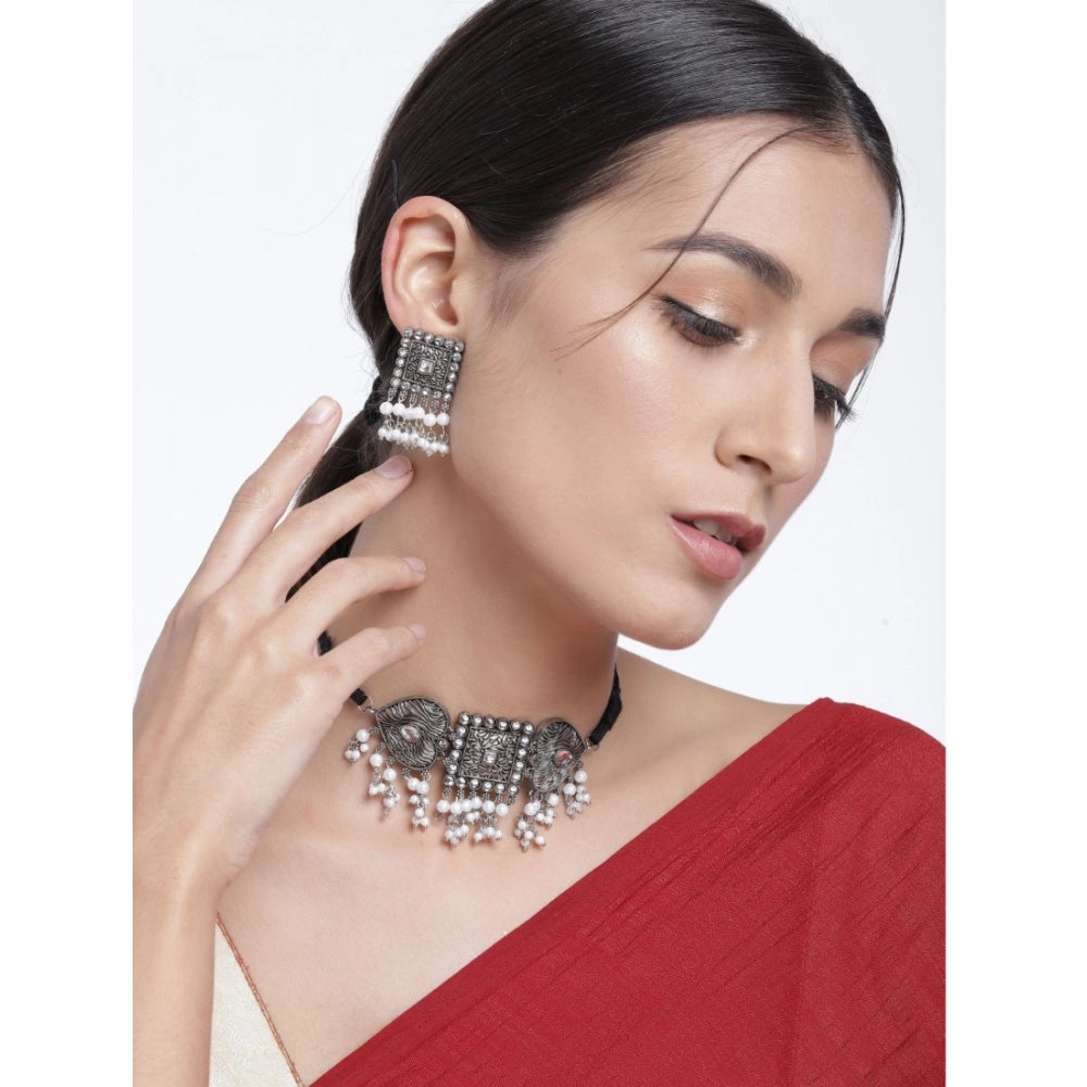 Generic Women's Rose Gold Plated Alloy Necklace & Earings Set (Silver)